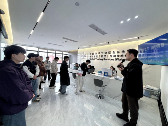 随后,学子们前往第二站——中联品检(武汉)检测技术有限公司。该公司作为中联品检集团在中西部地区的重要布局,是一家具备CMA法定资质与CNAS国家认可双重能力的第三方检验检测机构,专注于为纺织服装等行业提供专业检测服务,近日还获评“江汉区推进科技创新和产业创新融合发展先进集体”。在企业负责人的引导下,学子们参观了物理性能、纤维成分、化学性能等检测实验室,近距离接触国际先进的检测设备,了解检测工作的标准流程、技术规范以及行业发展趋势,深刻认识到化学检测专业在产业质量提升中的重要作用,进一步明确了专业学习的重点和方向。