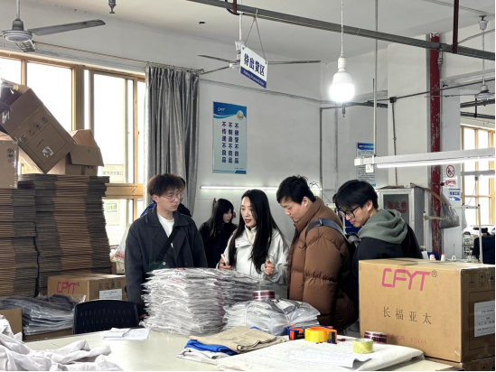 参与活动的学子在学校集合发车,怀着期待的心情奔赴此次访企之旅。抵达第一站——长福亚太服装工业园后,在企业工作人员的带领下,学子们先后参观了生产车间、研发实验室等区域。作为一家专业从事行政商务装、休闲装、防护类工装研发、设计、生产及销售的股份制企业,长福亚太拥有完善的生产体系和深厚的产业积淀,其总部位于江汉经济开发区,在区域纺织服装产业发展中发挥着重要作用。学子们详细了解服装生产流程、面料检测标准、智能管理模式等,重点关注了纺织面料的成分分析、质量把控等与自身专业紧密相关的环节,现场与企业技术人员交流探讨,直观感受企业的生产运营模式和人才需求导向。