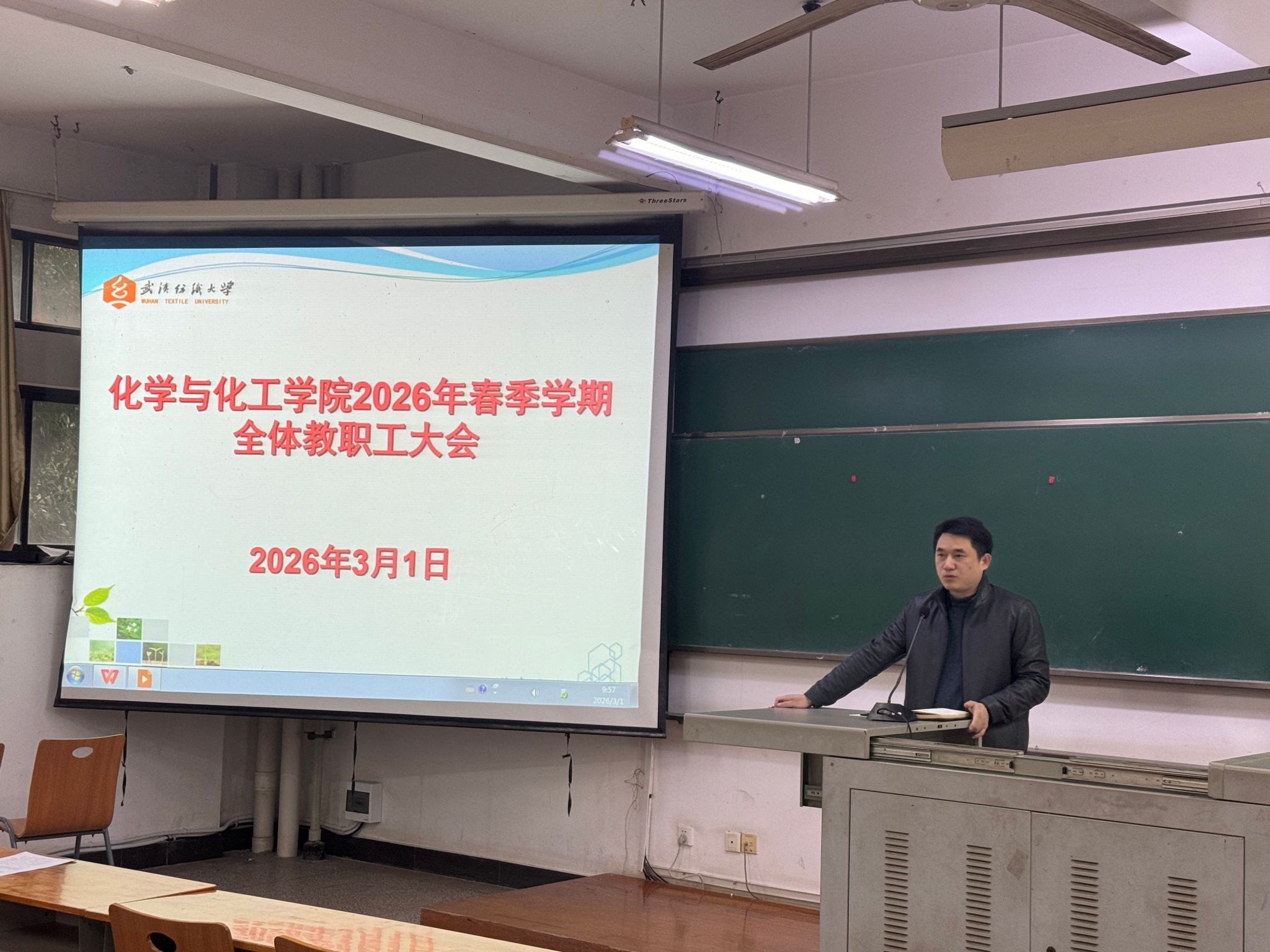 春启新程,奋进正当时。2026年3月1日上午,化工学院2026年春季学期全体教职工大会在阳光校区崇礼楼220教室顺利召开,全体教职工参会,学院党委书记杜勇主持会议。会议全面总结过往工作,系统部署新学期各项重点任务,凝聚全院共识,为新学期学院高质量发展指明方向、明确路径。